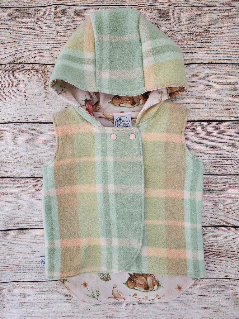 Wrap your little one in the warmth and character of a vest crafted from upcycled wool blankets. Each piece is thoughtfully designed to celebrate the rich texture and history of reclaimed wool, paired with a soft, breathable 100% cotton lining for comfort against your skin.